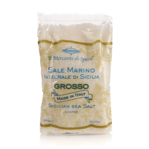 Sale marino grosso di Sicilia, Il Mercante di Spezie. Questo sale proviene dalle saline siciliane, è raccolto a mano e accuratamente vagliato, garantendo un prodotto naturale e autentico.