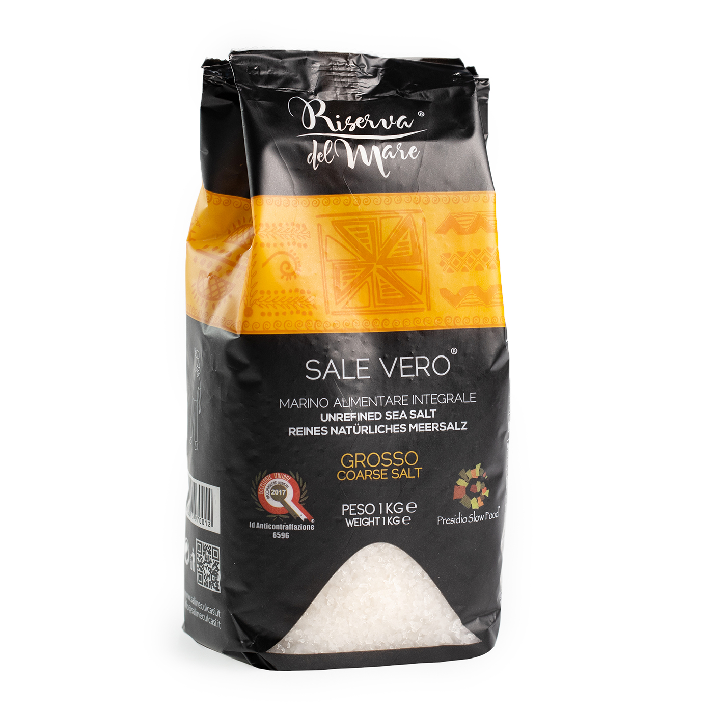 Il Sale Vero Integrale Grosso della storica azienda Riserva del Mare è un sale marino alimentare integrale a macina grossa, prodotto in modo artigianale e proveniente dalle Saline di Trapani.
