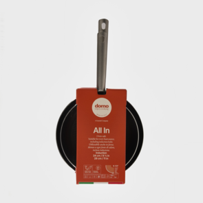 Queste padelle sono prodotte con alluminio riciclato e riciclabile, offrendo resistenza e prestazioni eccellenti. Dotate di manici in acciaio inossidabile, sono compatibili con tutte le fonti di calore, inclusa l'induzione, e utilizzabili anche in forno.