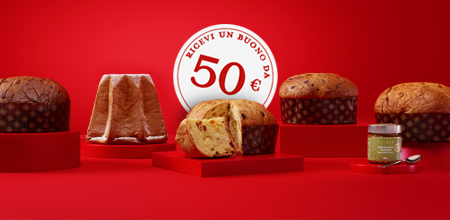Spendi almeno 50 € in panettoni e pandori, dal 13 al 19 novembre, e ottieni un buono da 50 €* da utilizzare su una spesa minima di 150 € dal 4 al 14 dicembre.