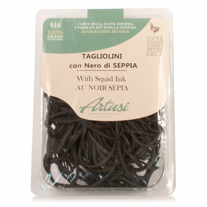 Tagliolini al Nero di Seppia del Pastificio Artusi: una pasta originale e gustosa con cui realizzare primi piatti originali e senza dubbio buonissimi.