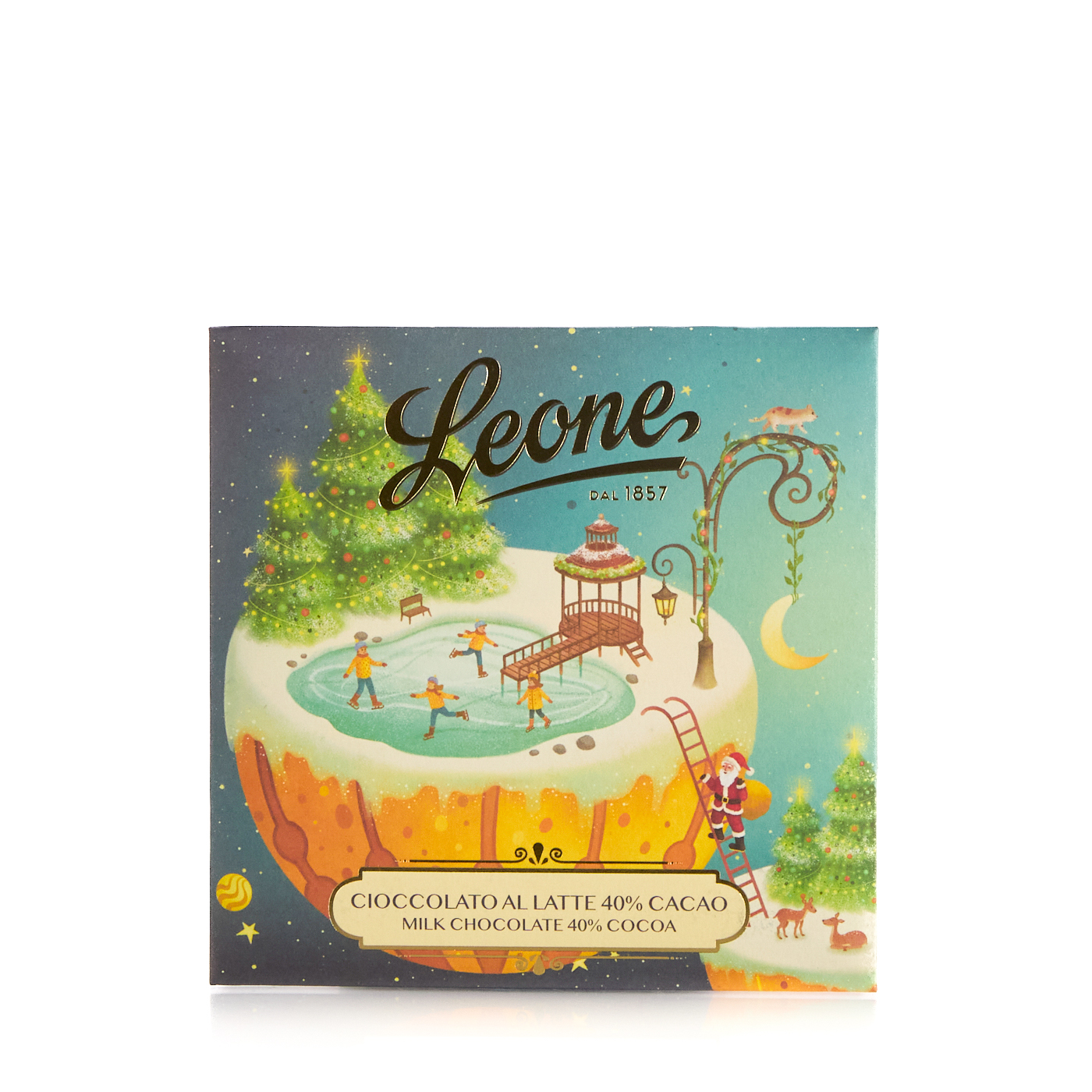 Tavoletta di cioccolato al latte, Leone. Una raffinata tavoletta di cioccolato al latte, realizzata con cacao al 40%, che celebra la tradizione e il gusto autentico.