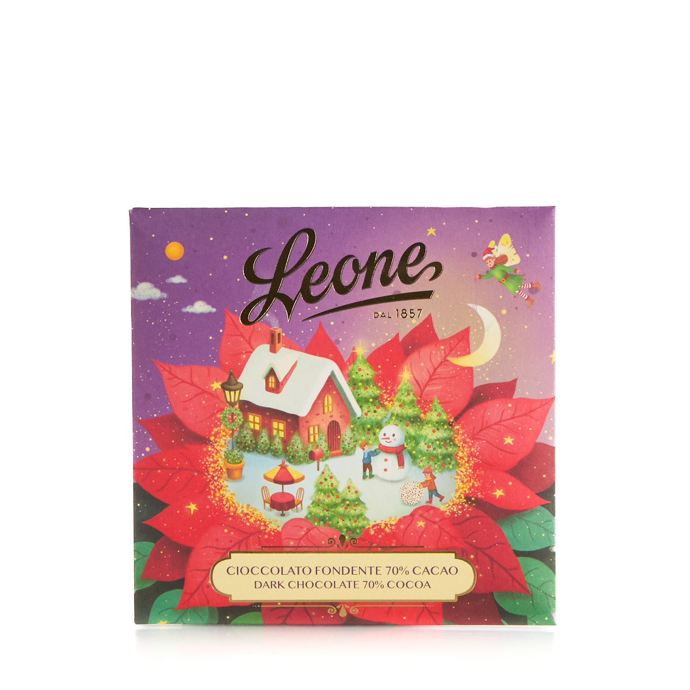 Tavoletta di cioccolato fondente 70% cacao, Leone. Un cioccolato dal gusto intenso, realizzato con una selezione accurata di fave di cacao e ingredienti di qualità.