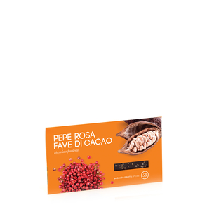 Tavoletta di Cioccolato Fondente con Pepe Rosa e Fave di Cacao di Bodrato: una chicca di cioccolato in cui ricerca, innovazione e alta qualità si incontrano alla perfezione.