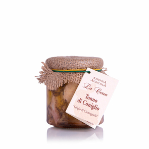 Il tonno di coniglio Grigio di Carmagnola de La Cerea: un piatto della tradizione contadina piemontese, nato per conservare il coniglio sott'olio quando ancora non esisteva il frigorifero.
