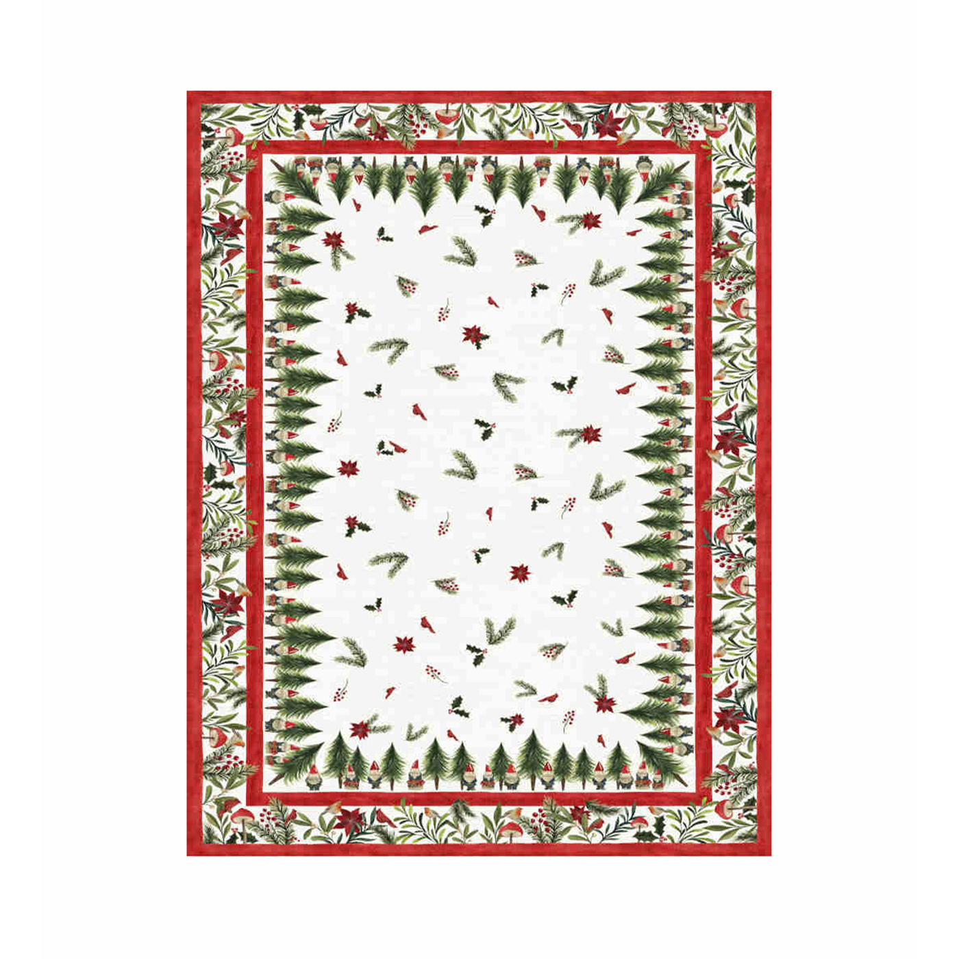 La Tovaglia di lino Jolly Elf 160x230 di Tessitura Toscana Telerie porta in tavola tutto il fascino del Natale, con un design ispirato alla natura invernale e ai piccoli elfi che popolano i boschi incantati.