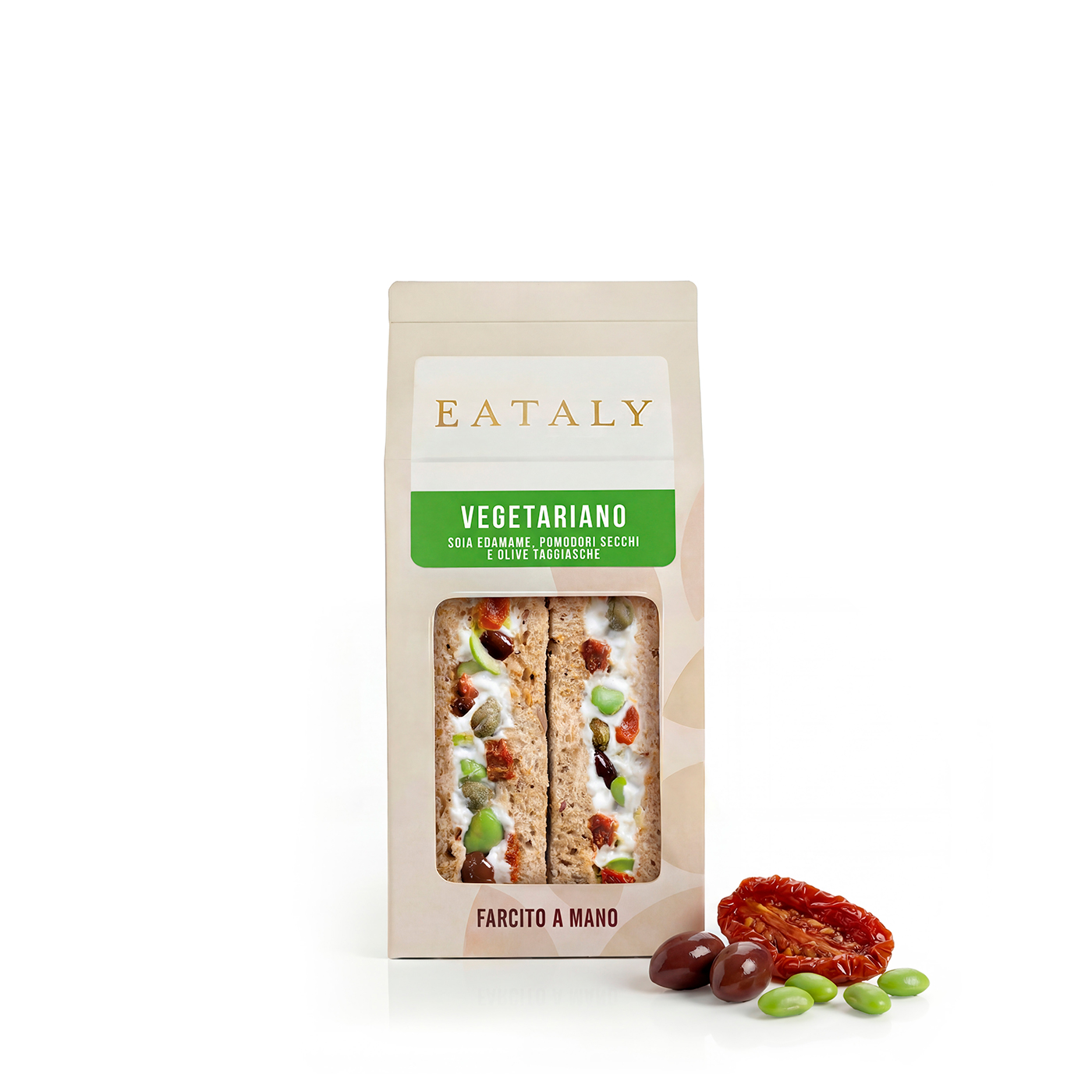 Il Tramezzino Vegetariano Eataly è un'esplosione di colori e sapori mediterranei, pensato per chi alle verdure proprio non sa resistere. Racchiuso in un pane ai cereali soffice e dalla crosta sottile, nasconde un cuore vegetale dal gusto vivace.