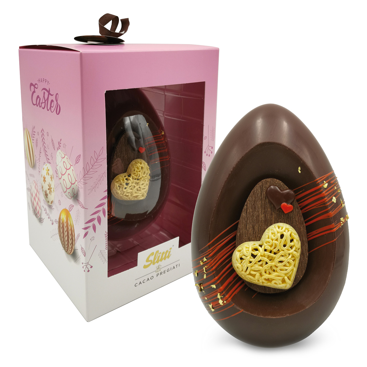 Uovo Love Fondente di Slitti: un uovo di Pasqua originale che conquisterà i tuoi occhi e il tuo palato con un disegno e un gusto semplicemente irresistibili.