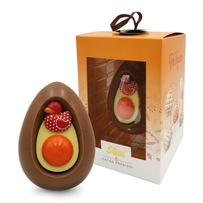 Solo finissimo cioccolato al latte di altissima qualità, dolce e cremoso preparato con cacao pregiato da una delle aziende più famose in Italia per la sua produzione di squisito cioccolato. L'uovo viene poi decorato a mano con una colorata e simpatica decorazione che richiama la forma e i colori del classico uovo sodo.