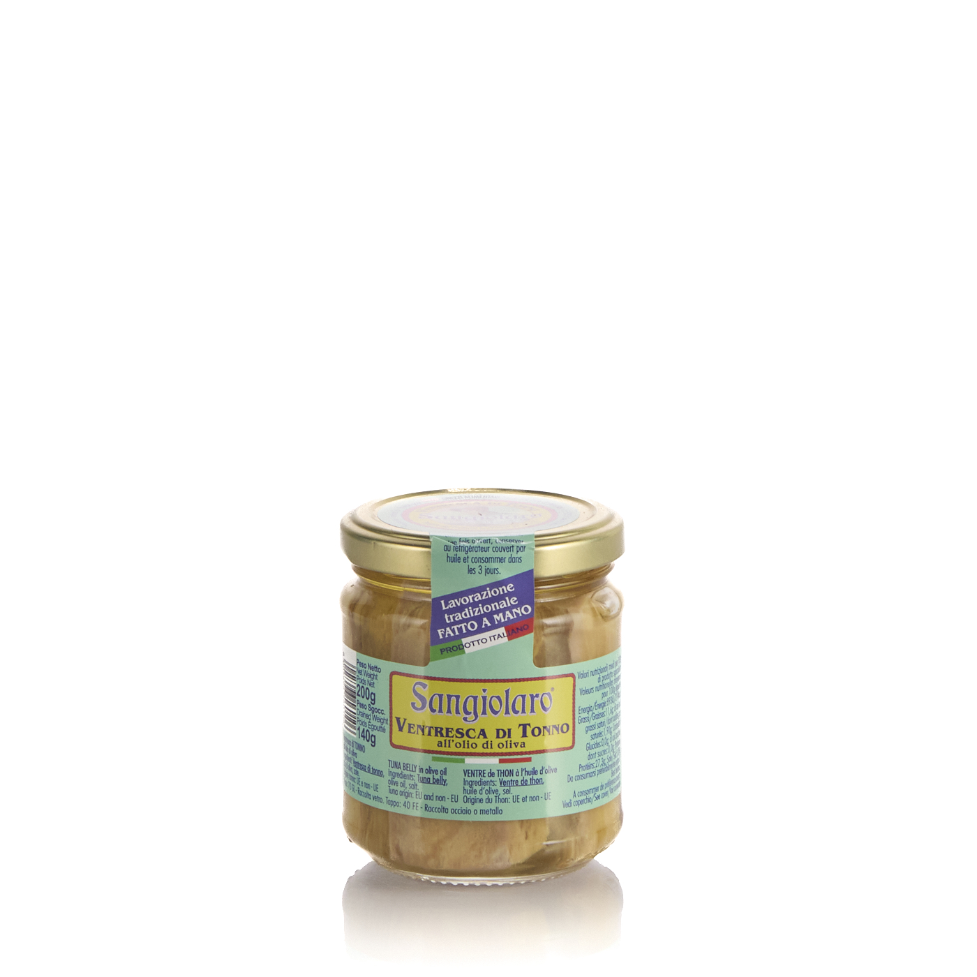 Ventresca di tonno in olio di oliva, Sangiolaro. Un prodotto italiano che valorizza la tradizione artigianale e unisce sapori delicati.