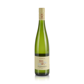 Vino bianco Allemanda Moscato Bianco Sicilia Noto DOC, Planeta. Un vino biologico prodotto con uve di Moscato Bianco coltivate sulle terre bianche di Noto, in Sicilia. Fresco e aromatico, caratterizzato da profumi intensi di gelsomino e agrumi.