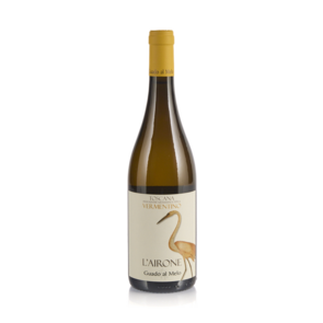 Vino bianco Vermentino Airone, GuadoalMelo. Un vino bianco realizzato con la varietà locale di uva Vermentino, proveniente dalle vigne di Castagneto Carducci, nella suggestiva regione della Toscana. Il produttore si distingue per il rispetto dei principi di sostenibilità.