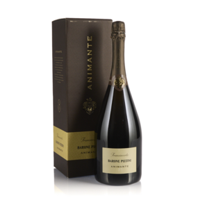 Vino Franciacorta Extra Brut Animante, Barone Pizzini. Questo Franciacorta rappresenta l'anima viva dei vigneti da cui provengono le sue uve: Chardonnay, Pinot nero, Erbamat e Pinot bianco.