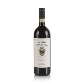 Vino rosso riserva vecchie viti, Frescobaldi. Un vino che rappresenta l'eccellenza della tradizione vinicola toscana, prodotto dalle più antiche viti del Castello Nipozzano, caratterizzate da un profondo apparato radicale.