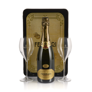 Vino spumante Trentodoc Millesimato brut, Ferrari. Un elegante vino spumante realizzato con il metodo classico, utilizzando esclusivamente uve Chardonnay coltivate alle pendici dei monti del Trentino.