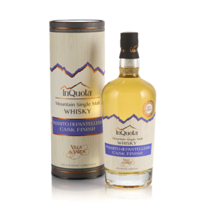 Whisky Passito di Pantelleria Cask Finish, Villa de Varda. Un single malt di montagna prodotto in edizione limitata, che riflette la tradizione della distillazione con un tocco di esclusività.