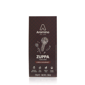 Zuppa toscana con riso e legumi, Aramino. Un preparato pronto per la cottura che combina ingredienti selezionati per offrire un piatto ispirato alla tradizione culinaria toscana.